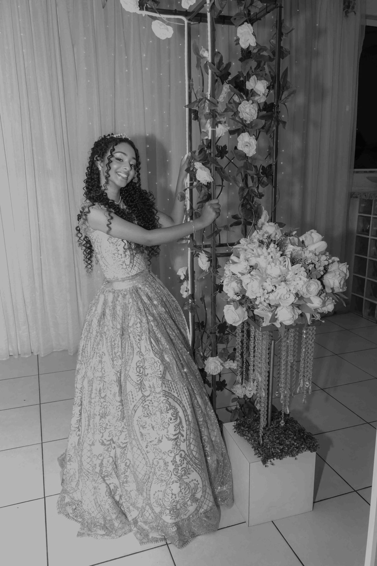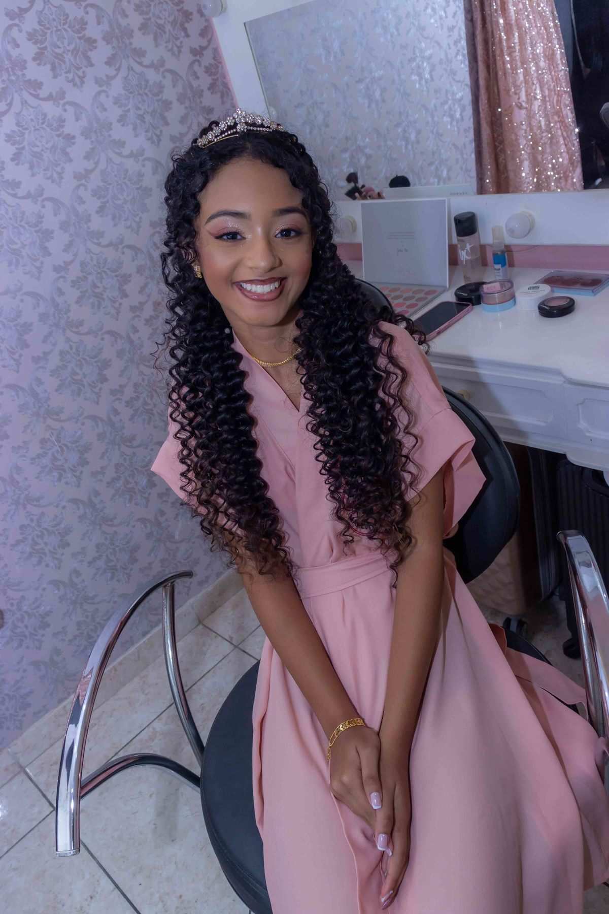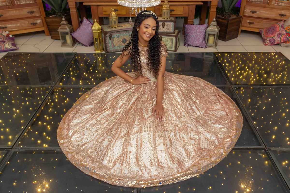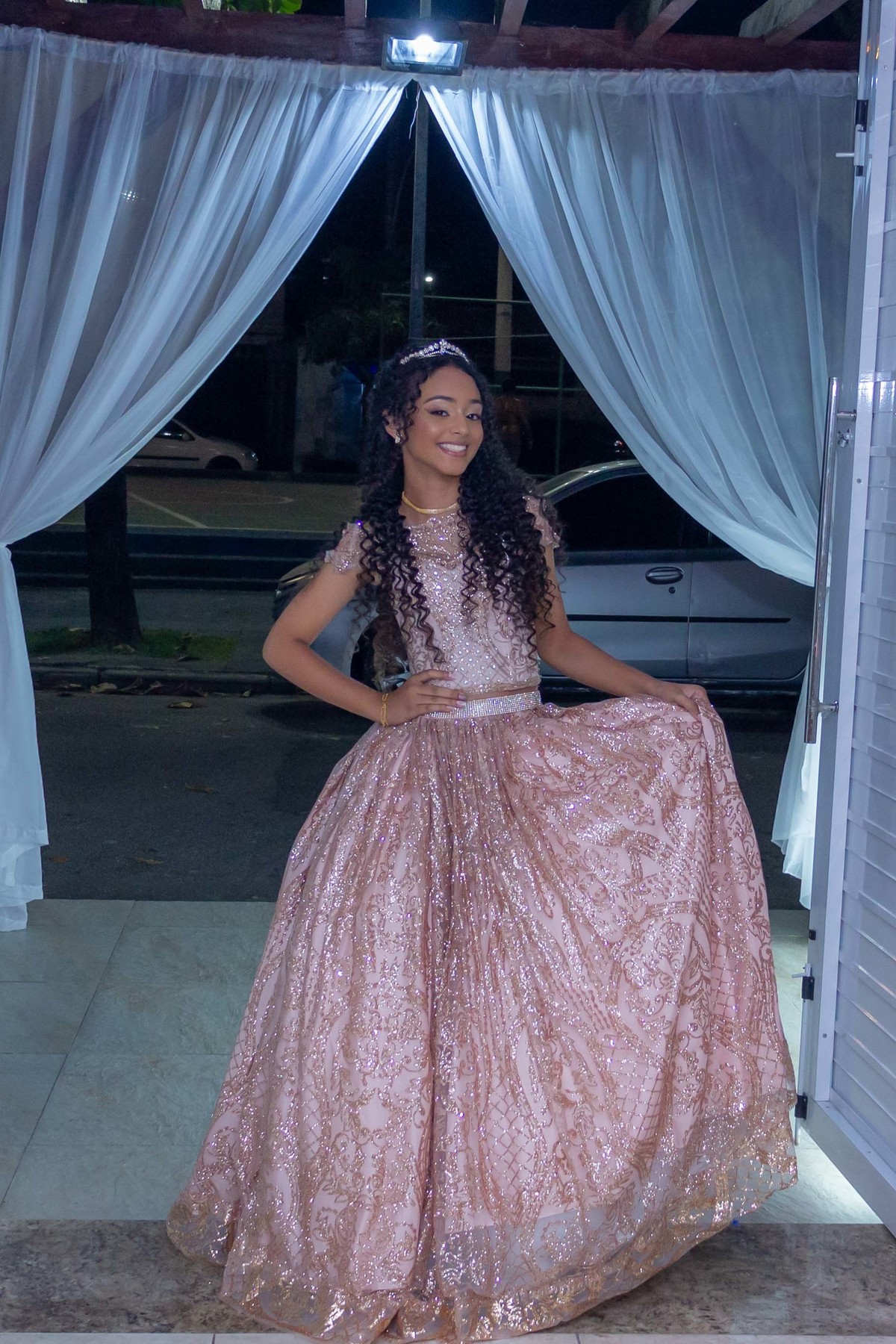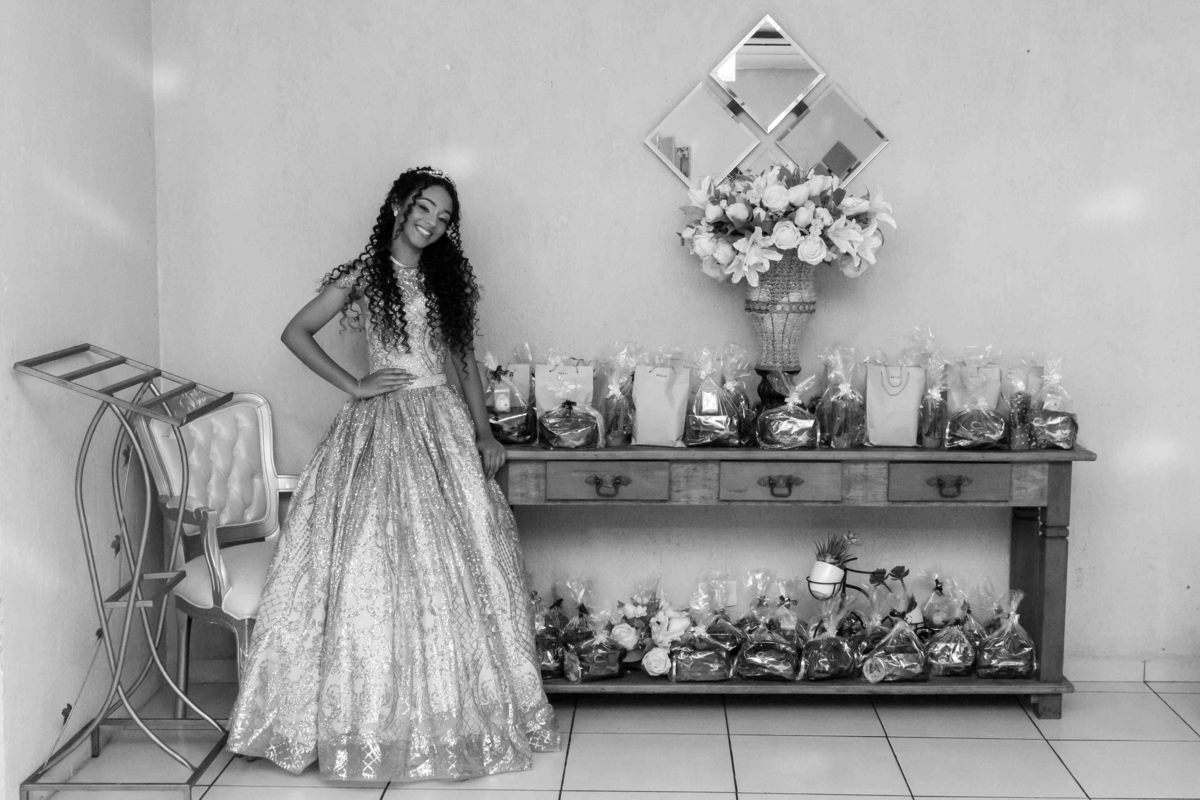 Não ter atrasos é fundamental, a debutante está maquiada e pronta duas horas antes do evento possibilita fazer as fotos do making of com calma e explorar as poses com todos os vestidos.