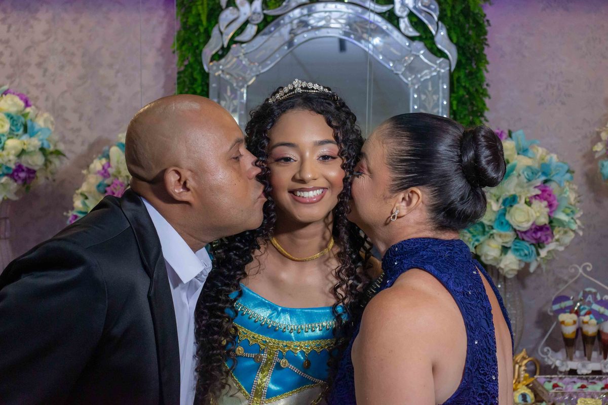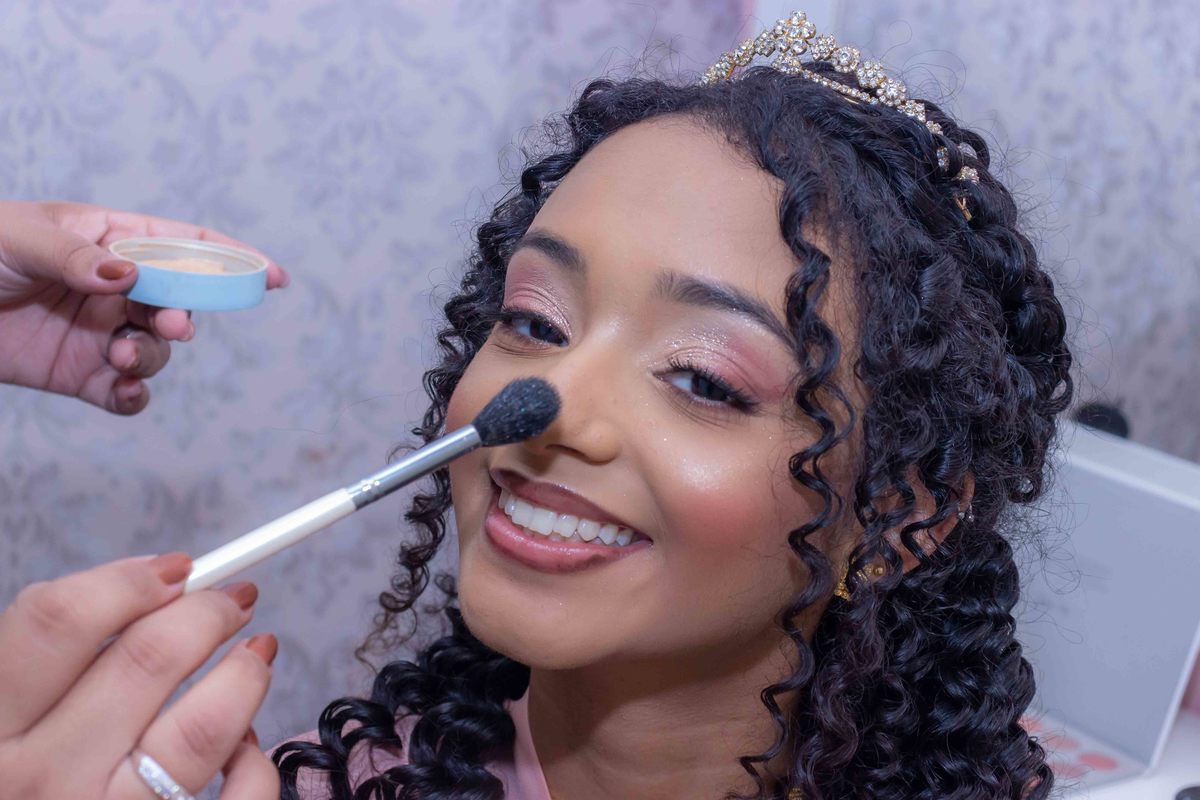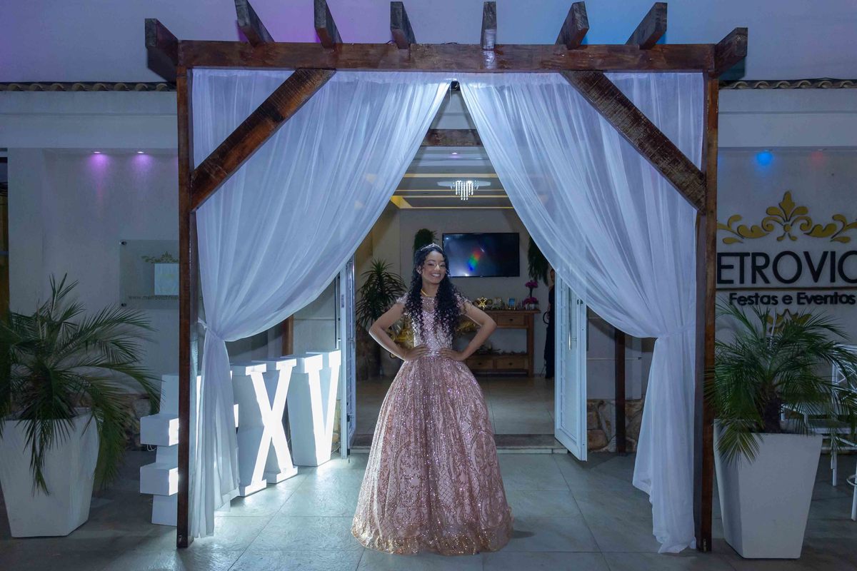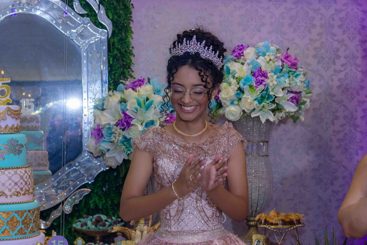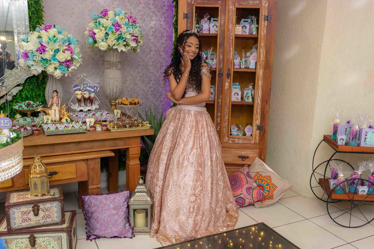 Não ter atrasos é fundamental, a debutante está maquiada e pronta duas horas antes do evento possibilita fazer as fotos do making of com calma e explorar as poses com todos os vestidos.