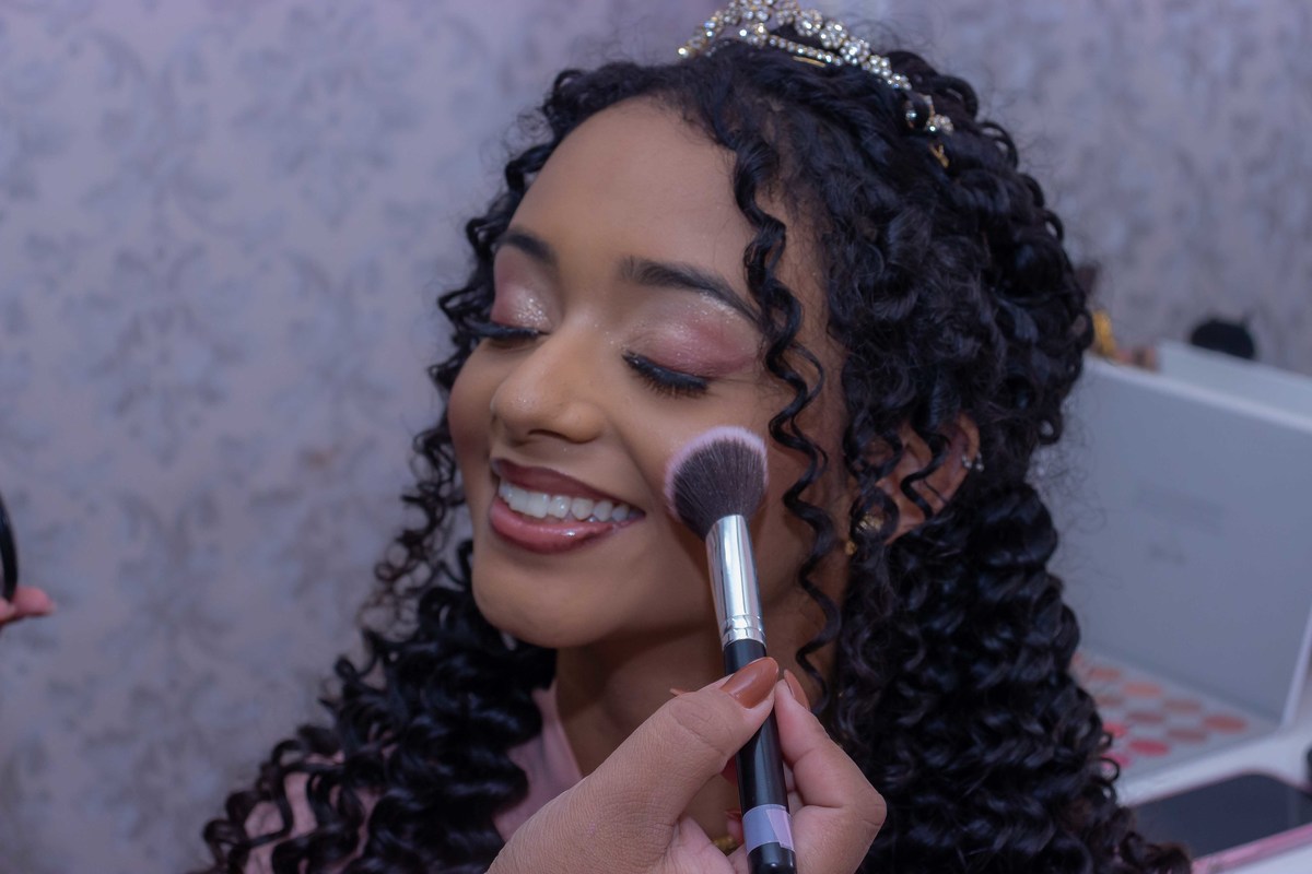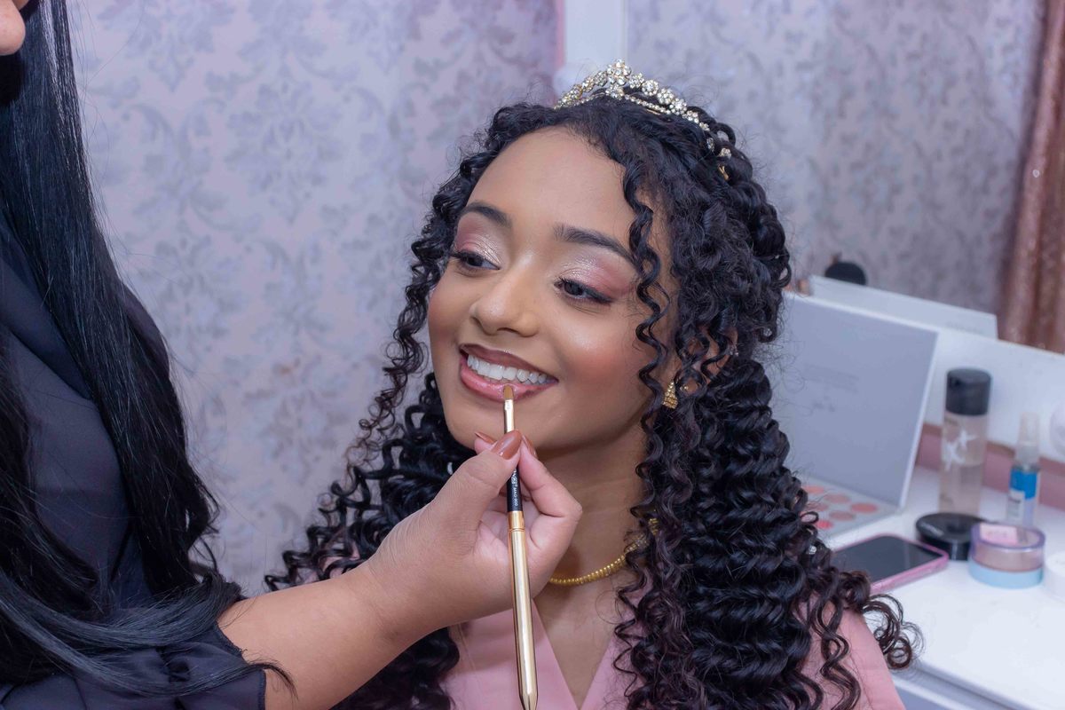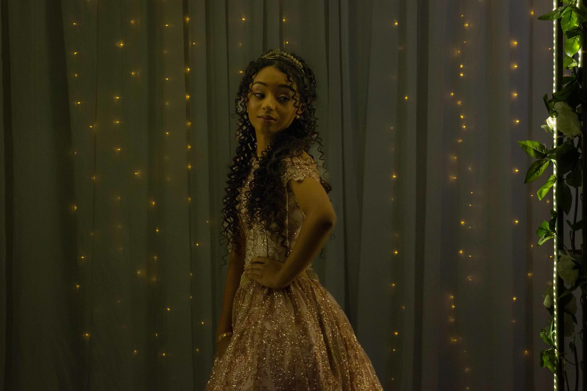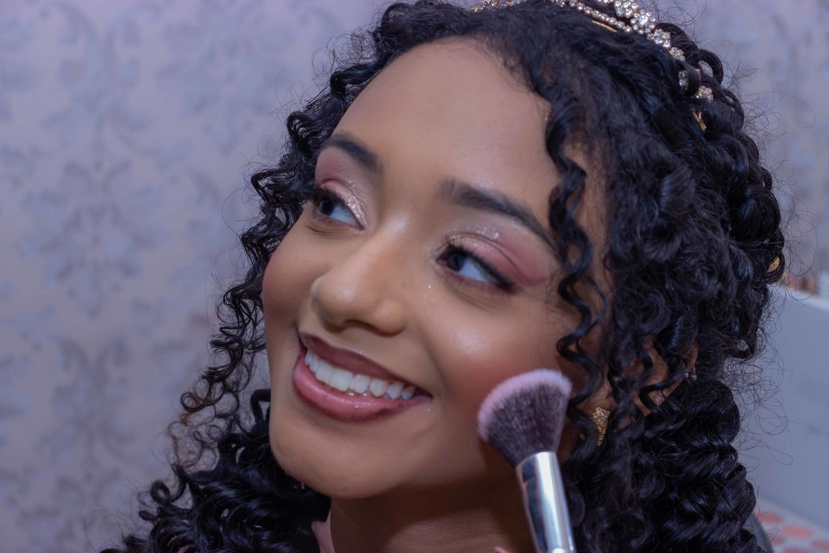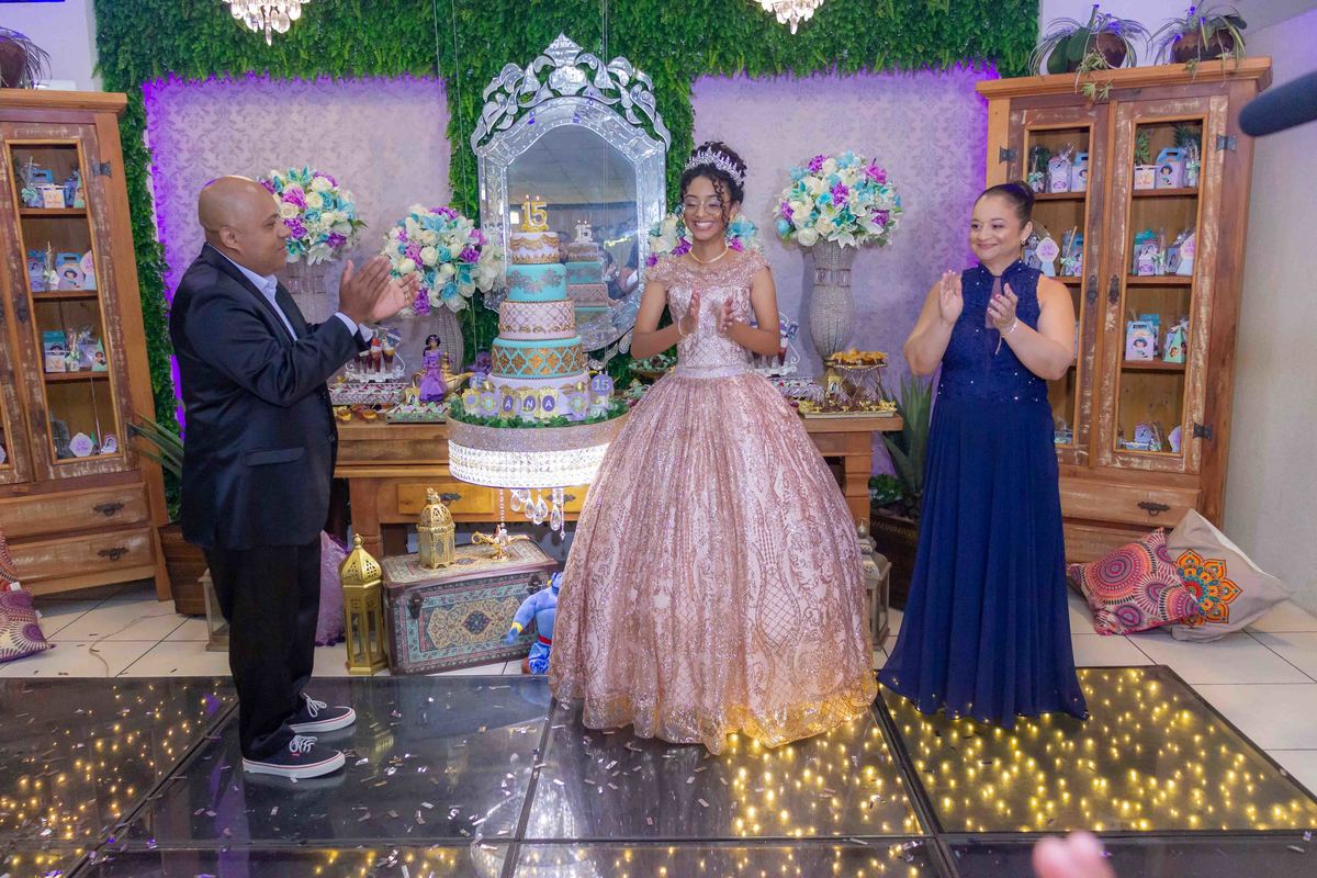 Não ter atrasos é fundamental, a debutante está maquiada e pronta duas horas antes do evento possibilita fazer as fotos do making of com calma e explorar as poses com todos os vestidos.