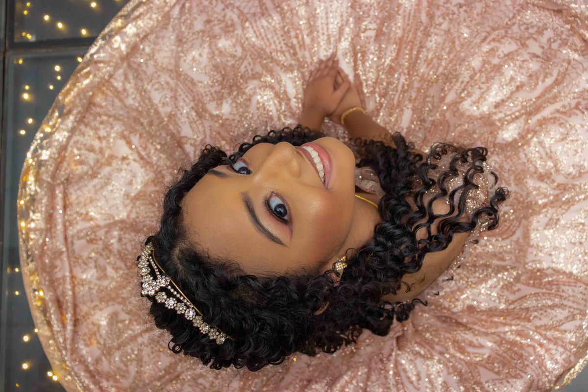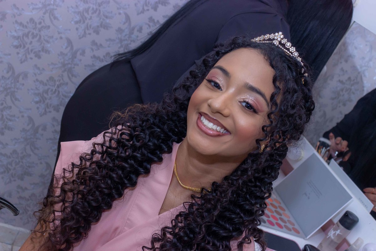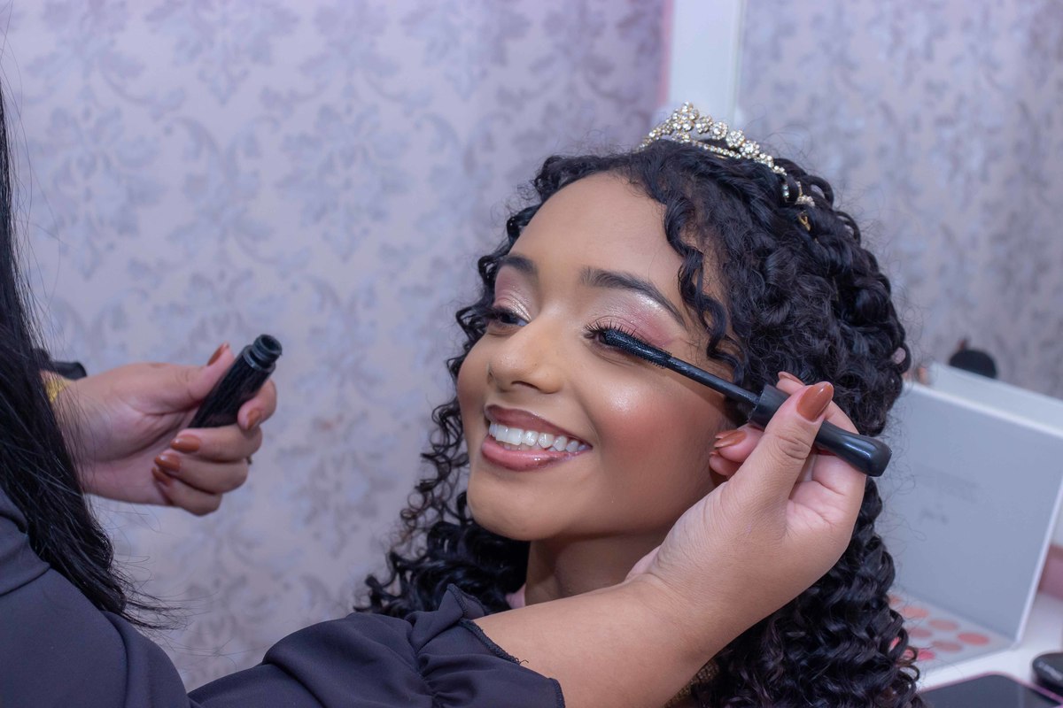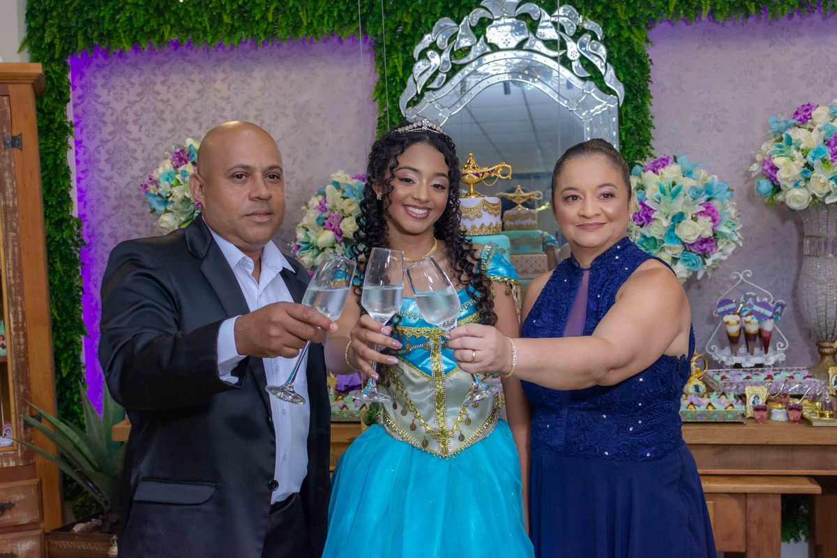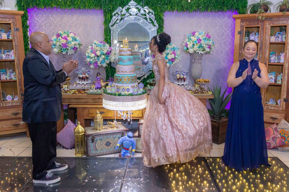 Não ter atrasos é fundamental, a debutante está maquiada e pronta duas horas antes do evento possibilita fazer as fotos do making of com calma e explorar as poses com todos os vestidos.