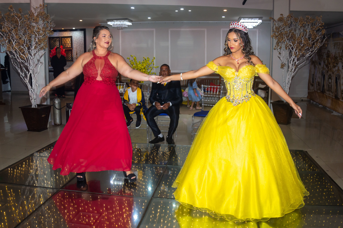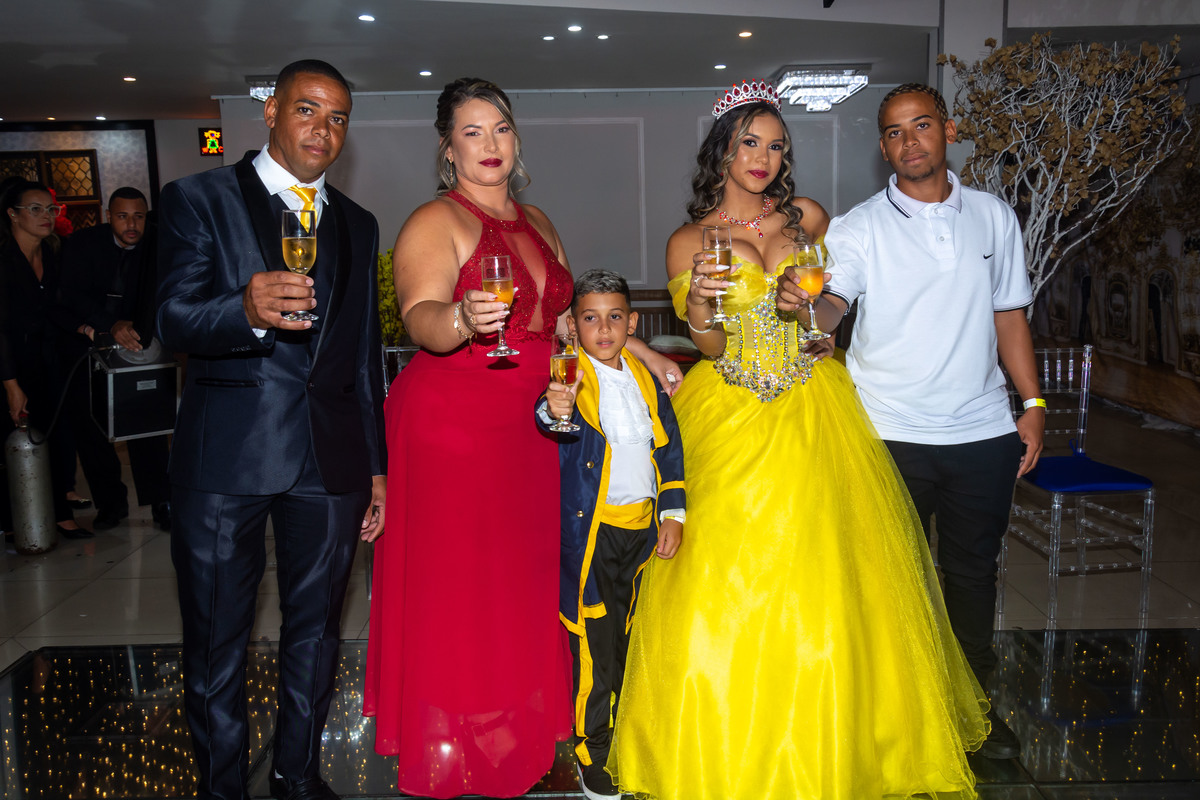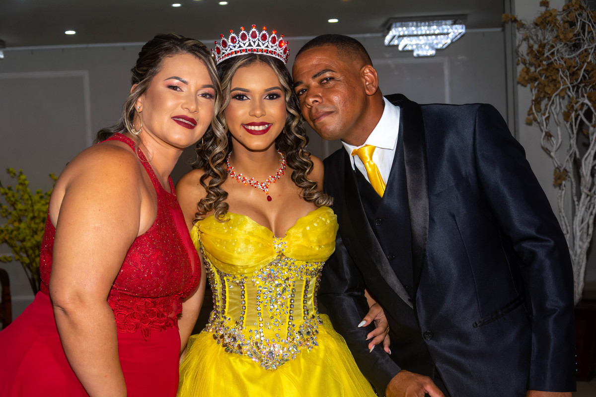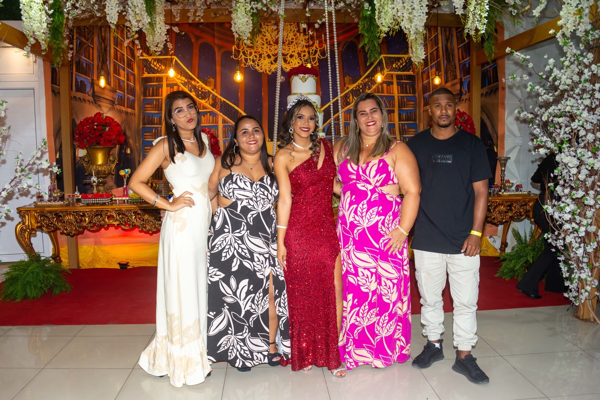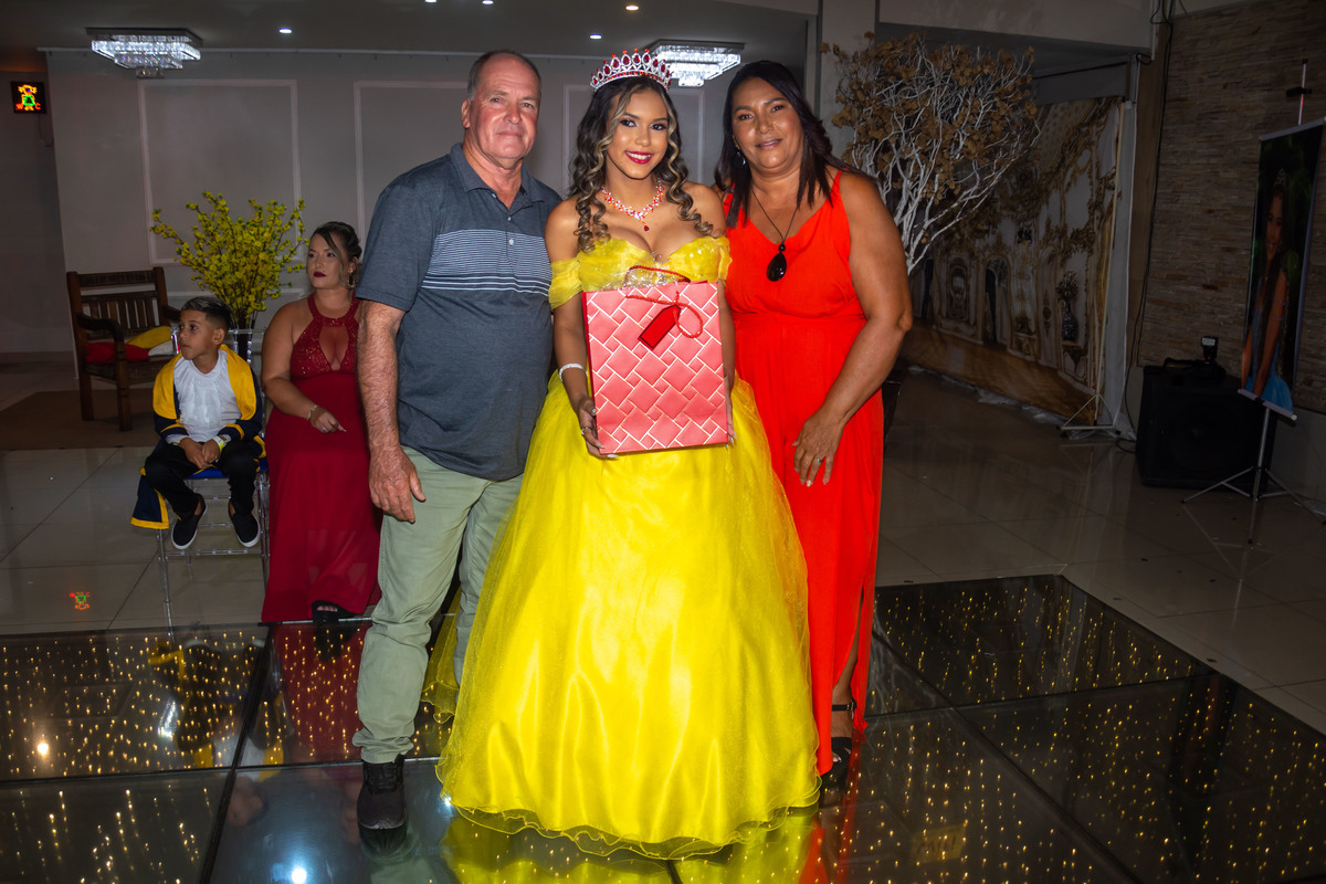 O salão se encheu de luz quando Daphiny surgiu deslumbrante, como uma verdadeira princesa. O sorriso no rosto, os olhos brilhando de felicidade e a presença marcante tornaram essa noite simplesmente única. Momentos emocionantes marcaram a celebração, desde a valsa com seus entes queridos até as homenagens que tocaram o coração de todos os presentes.