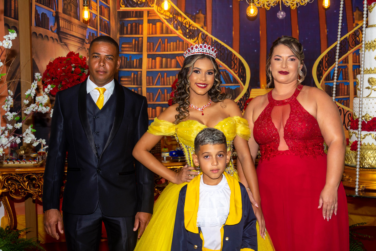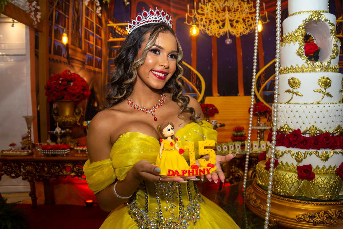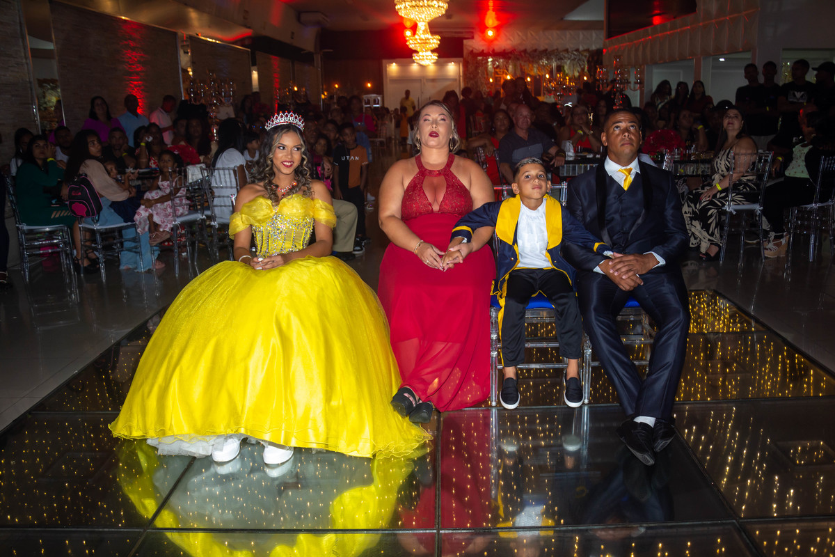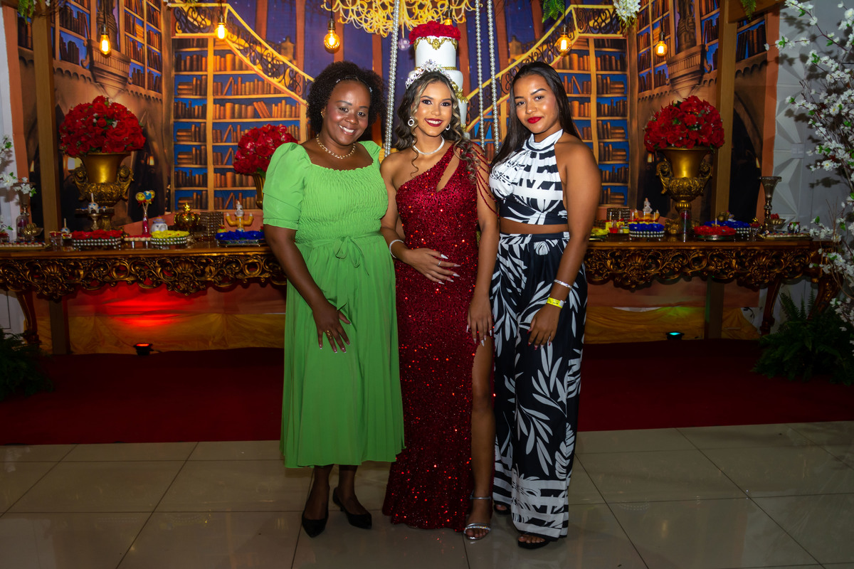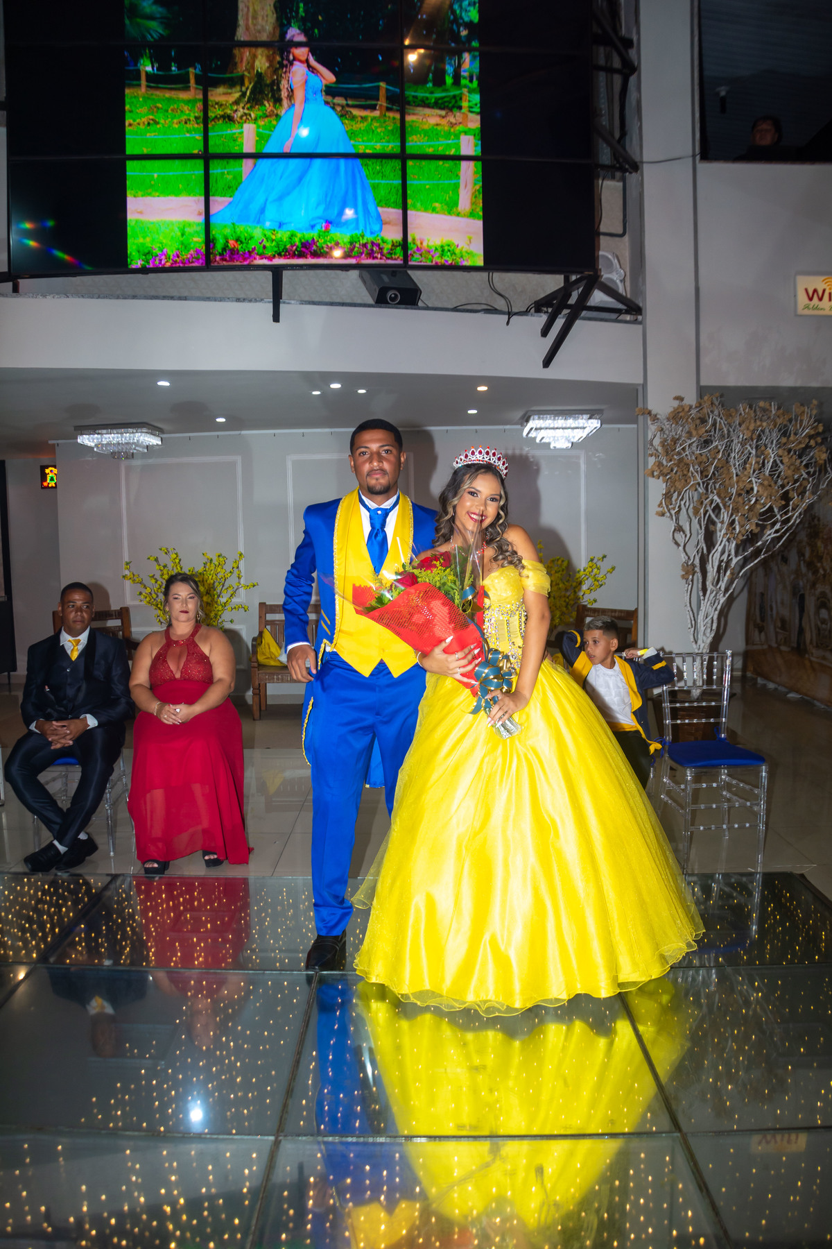 O salão se encheu de luz quando Daphiny surgiu deslumbrante, como uma verdadeira princesa. O sorriso no rosto, os olhos brilhando de felicidade e a presença marcante tornaram essa noite simplesmente única. Momentos emocionantes marcaram a celebração, desde a valsa com seus entes queridos até as homenagens que tocaram o coração de todos os presentes.