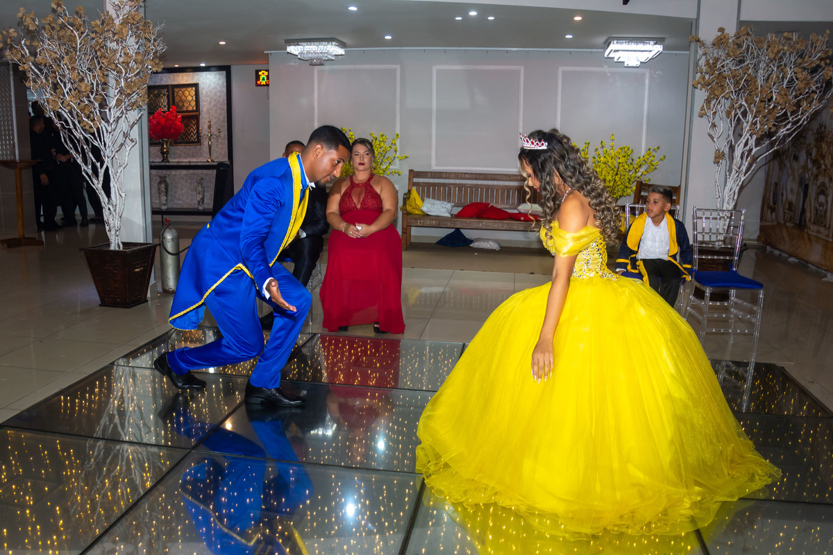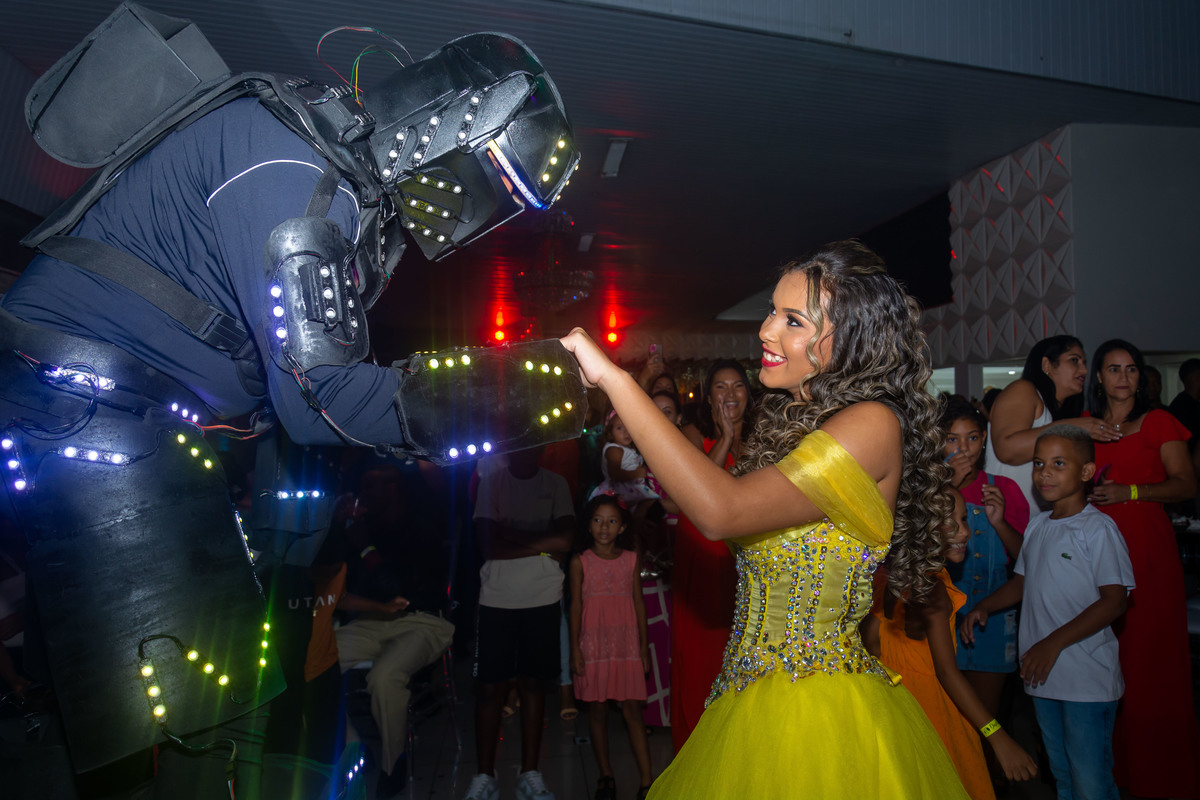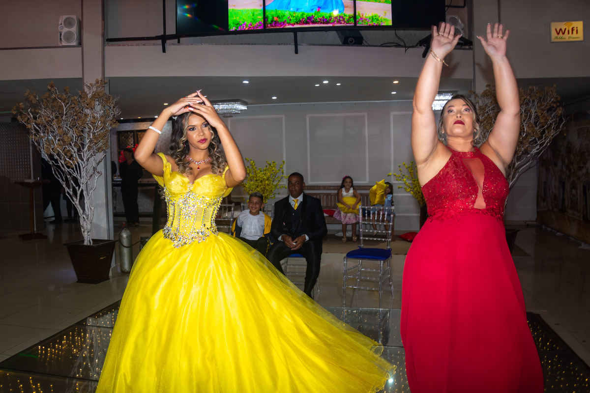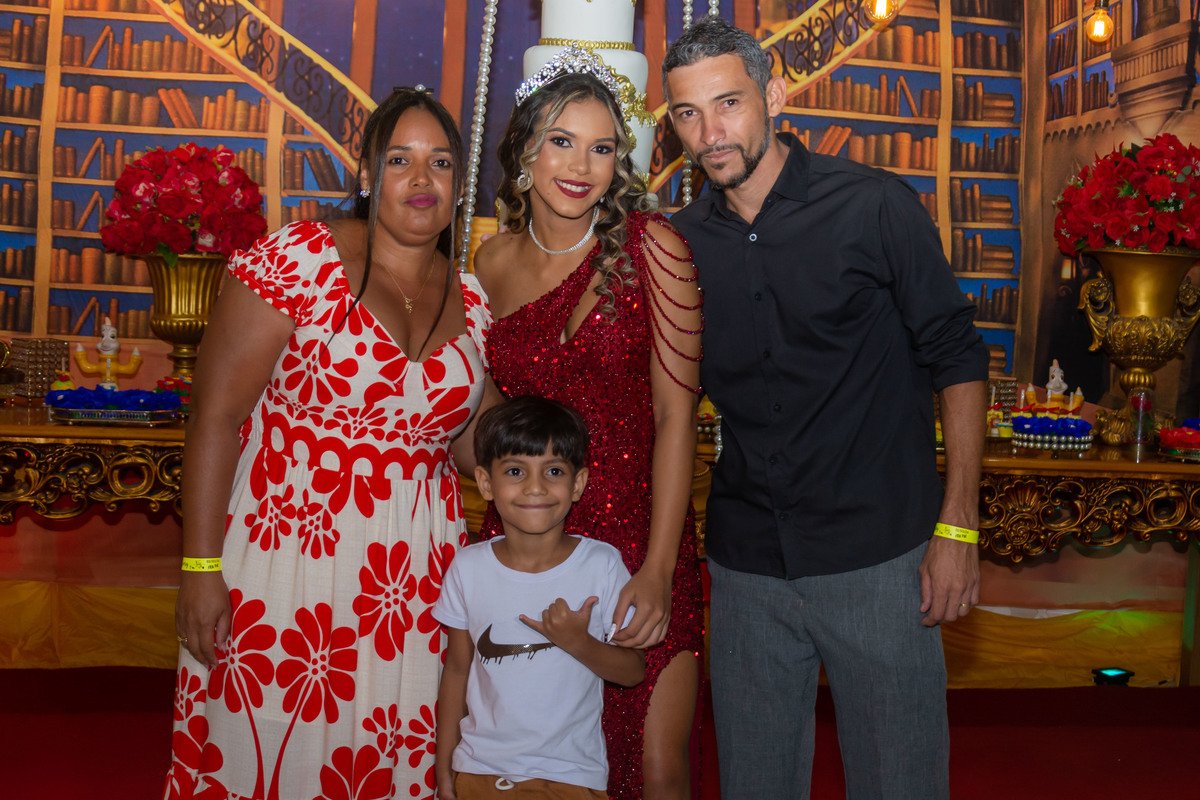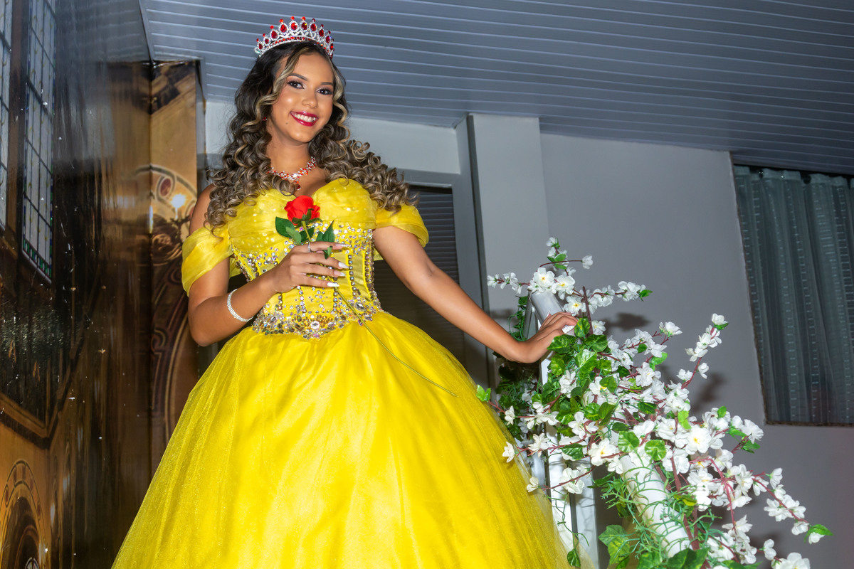 O salão se encheu de luz quando Daphiny surgiu deslumbrante, como uma verdadeira princesa. O sorriso no rosto, os olhos brilhando de felicidade e a presença marcante tornaram essa noite simplesmente única. Momentos emocionantes marcaram a celebração, desde a valsa com seus entes queridos até as homenagens que tocaram o coração de todos os presentes.