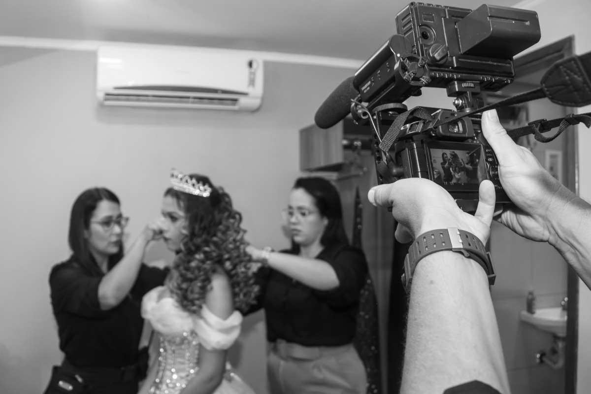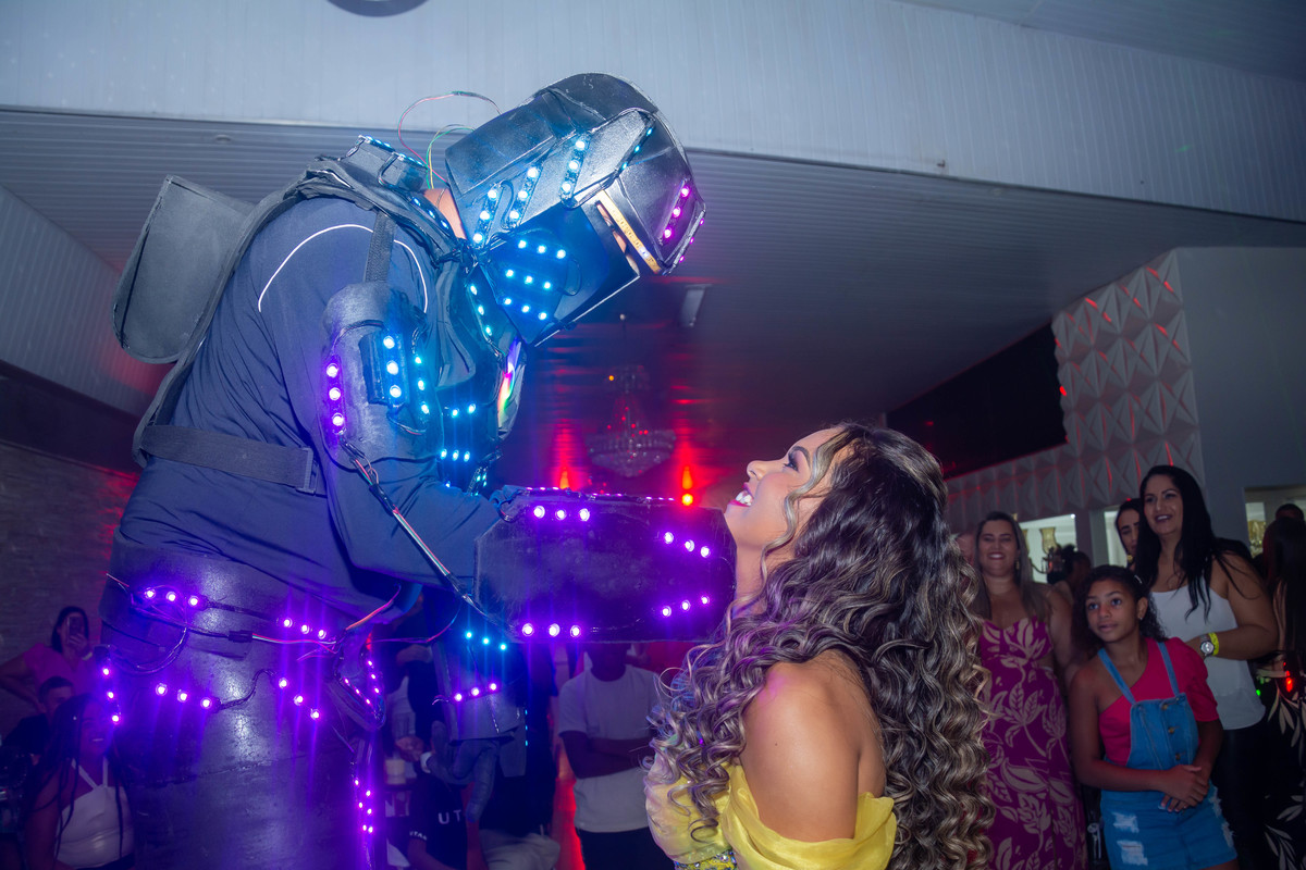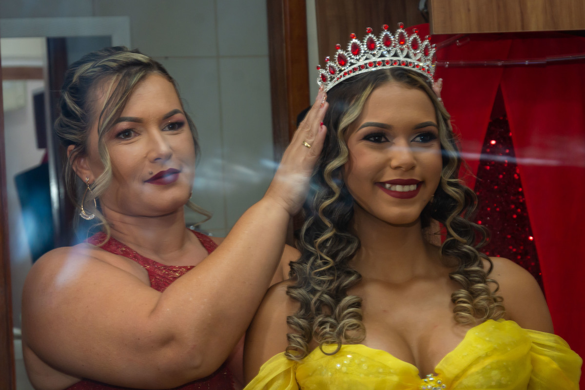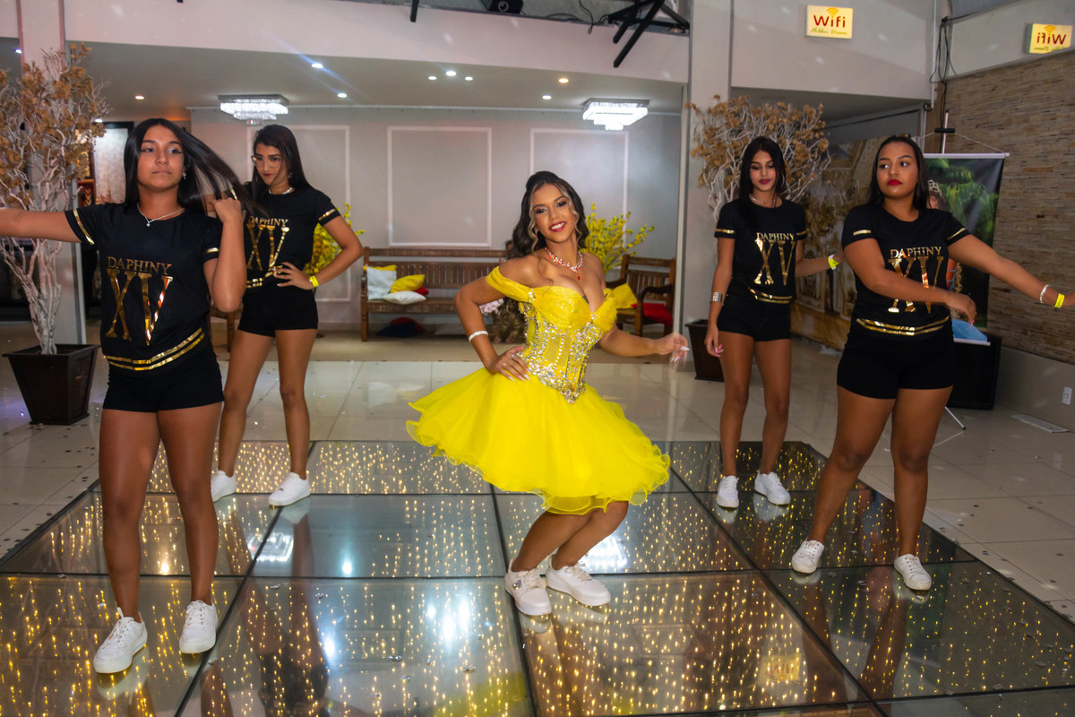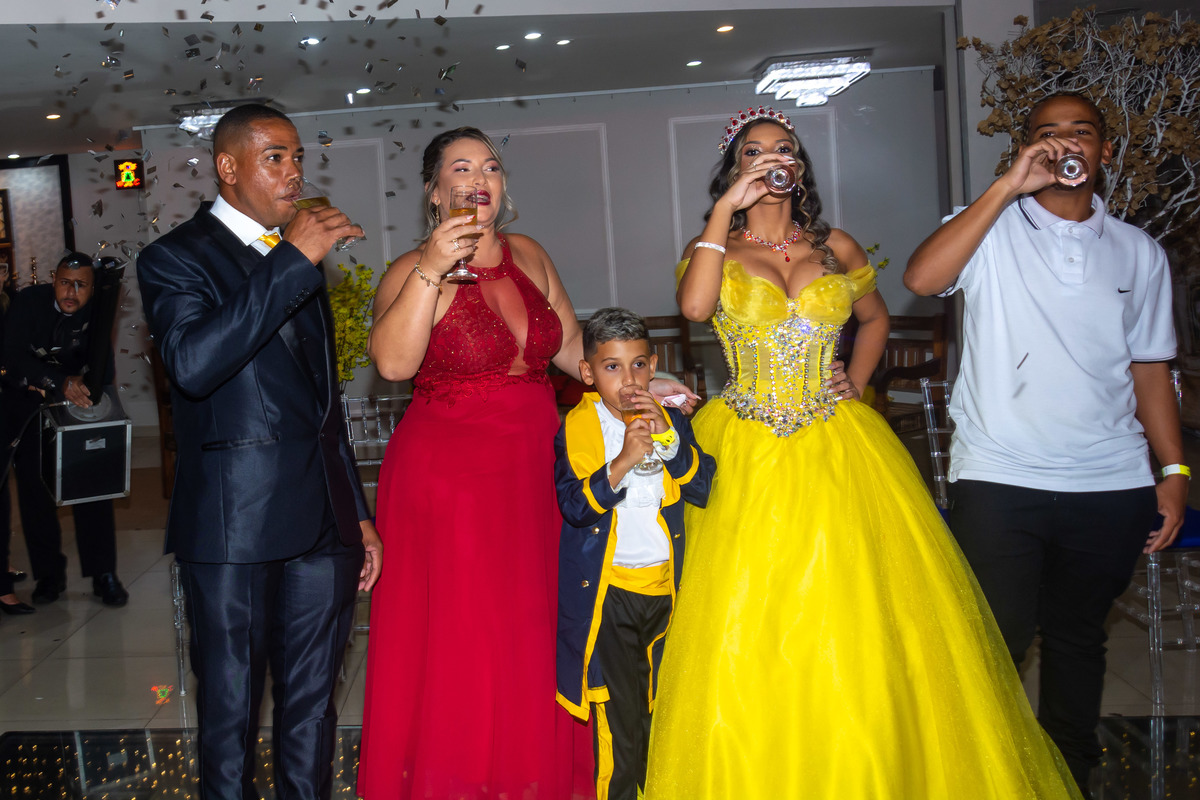 O salão se encheu de luz quando Daphiny surgiu deslumbrante, como uma verdadeira princesa. O sorriso no rosto, os olhos brilhando de felicidade e a presença marcante tornaram essa noite simplesmente única. Momentos emocionantes marcaram a celebração, desde a valsa com seus entes queridos até as homenagens que tocaram o coração de todos os presentes.